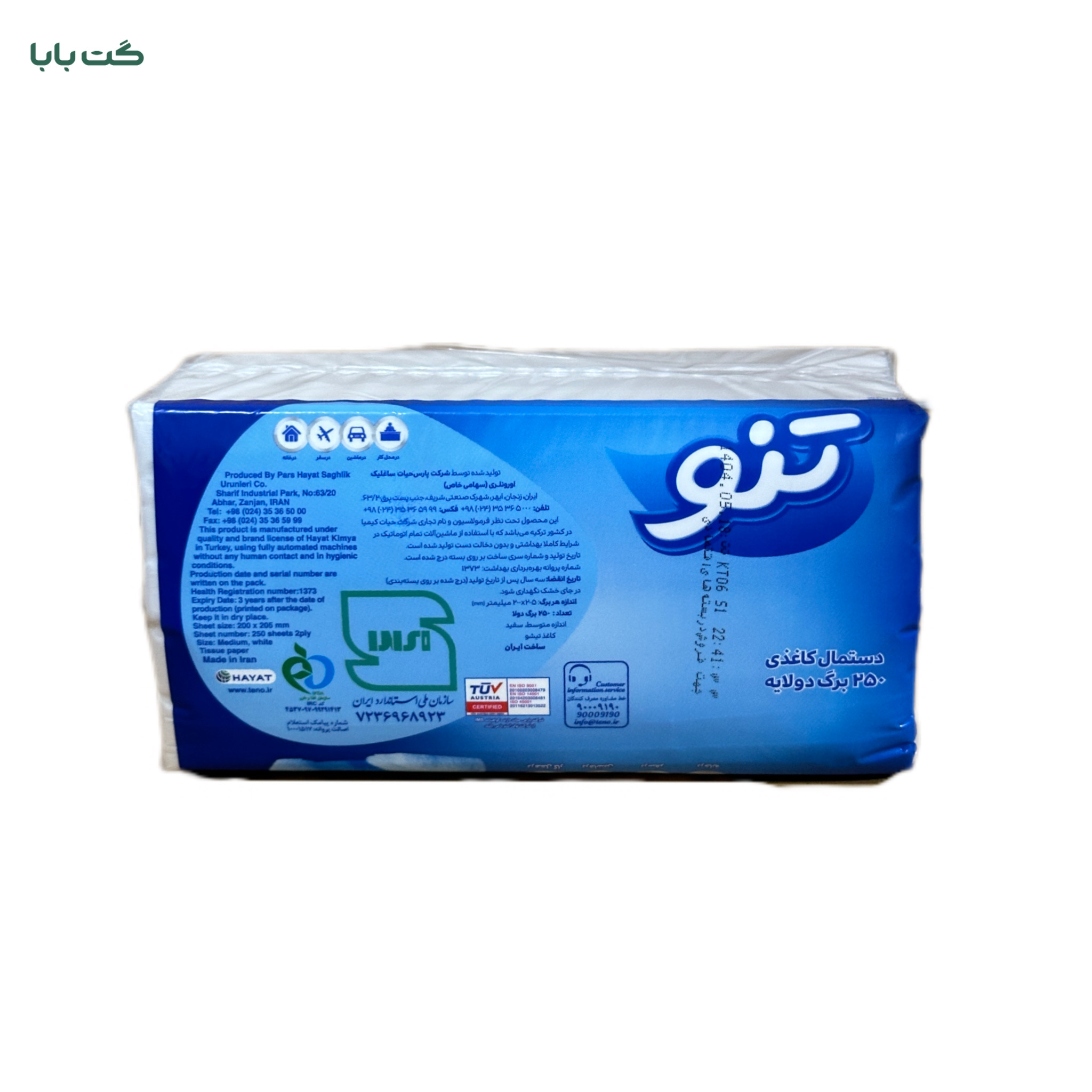 دستمال کاغذی 250برگ تنوضمانت تاریخدستمال تنو