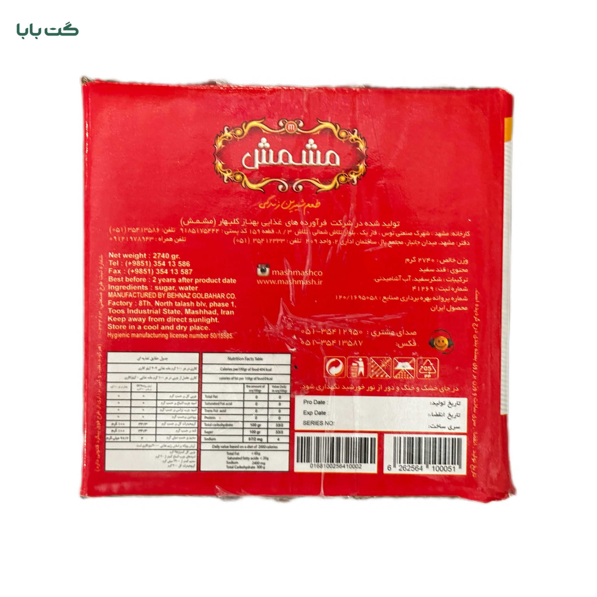 قند سفید مشمش_2.700kgضمانت تاریخقند مشمش