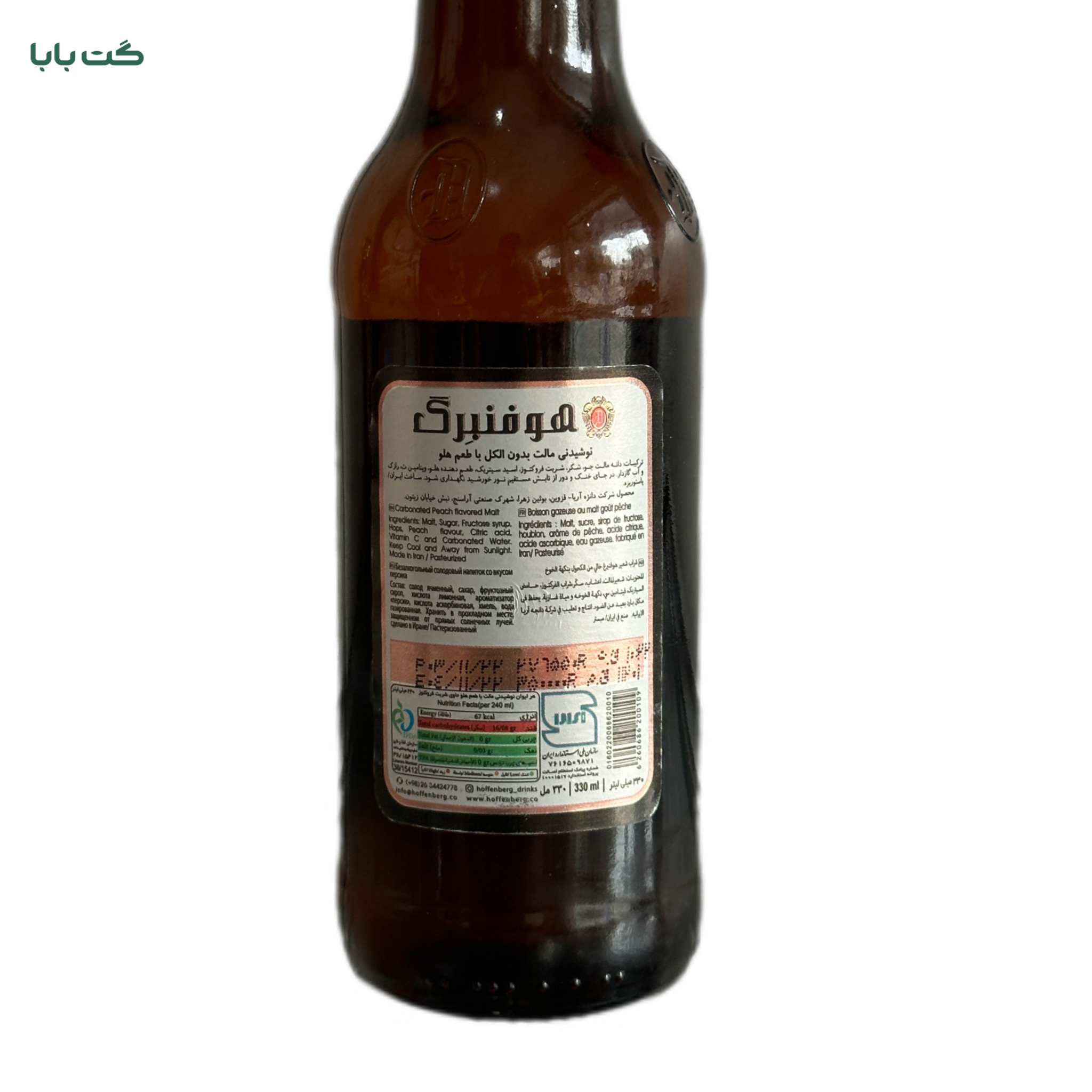 نوشیدنی گازدار هلو هوفنبرگ_330mlضمانت تاریخنوشیدنی هوفنبرگ